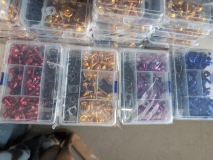 Hienot alumiiniset pultit, sarja sisältää yli 150 osaa. (Huom kaikki ei pultteja). Eri kokoja.