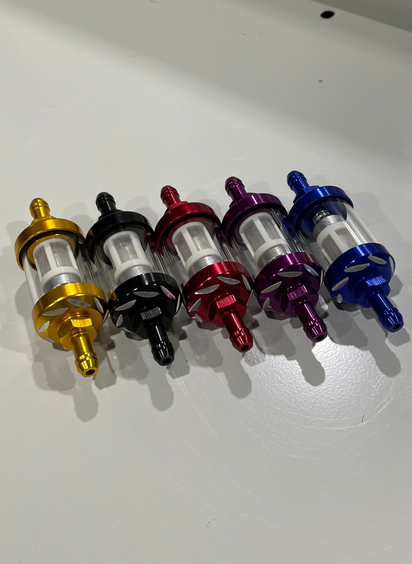 Keskiosa lasia, liitäntä 8mm. Läpinäkyvä malli mahdollistaa lian ja hiekan näkemisen suodattimessa ilman irroitusta.