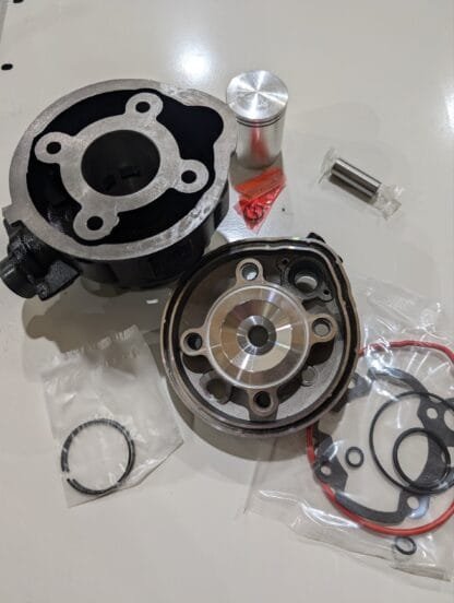 Laadukas valurautainen sylinterisarja AM6 moottoreihin. Täydellinen setti, Sisältää kannen, sylinterin, männän, männäntapin, männänsokat, männänrenkaat ja tiivisteet.
